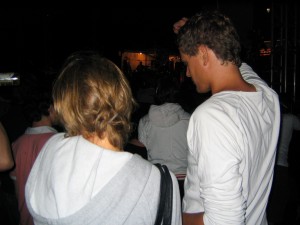 „Wir sind nicht zur Erholung hier!“, erklärte Herr E. dem Neuzugang Yannick die prekäre Lage. Unsere erste Tagesaufgabe war nun: Jens Friebe dissen! Der maßlos überschätzte, über laffe DAT-Halbplaybacks nölende Kinderstar mußte von seinem Ross geholt werden. Yannick und ich legten eine saubere Aerobic-Performance vor der Bühne hin und wir waren uns einig: „Die Meßlatte für Aerobic-Begeleitmusik hatte Herr Friebe um einige Zentimeter höher gelegt.“